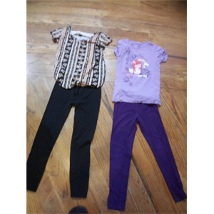 lot of 5 girls clothing. size 6-7. all good condition black leggings Copelli KIds purple leggins Cat & Jack purple t shirt Isand YuMi emogi nation white rainbow t shirt dressy blouse black wi read more...