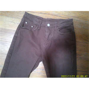 womens/teen brown denim jeans. legs slightly flared ragged hem. size Mwaist 30"inseam 30"front rise 10"excellent conditionbrand has been cut off, but is good quality brand read more...